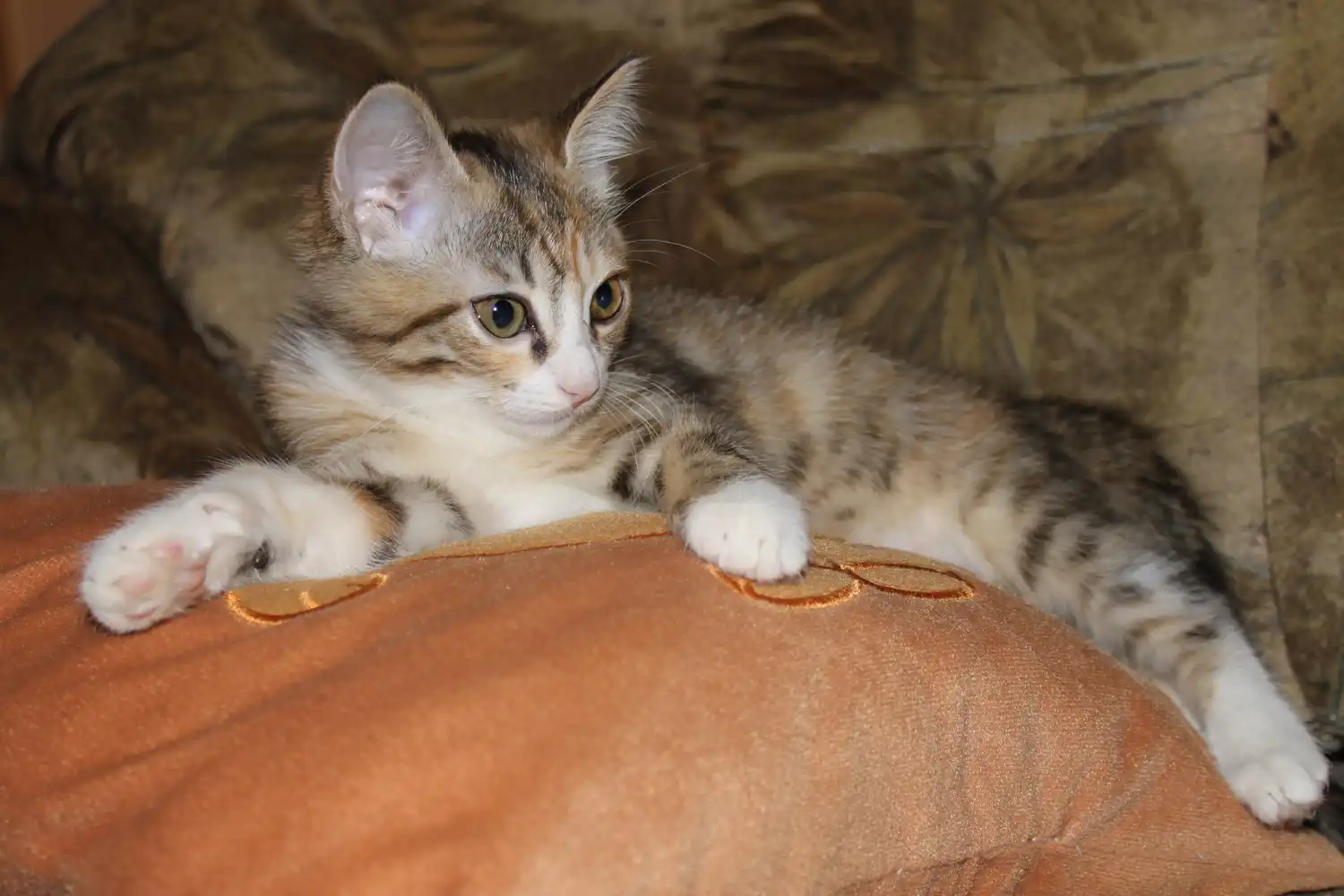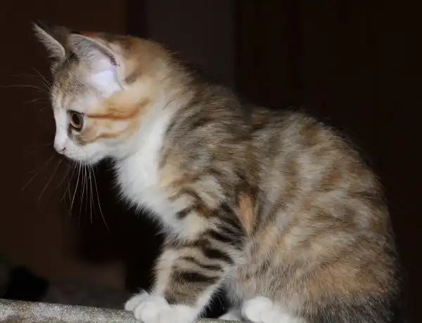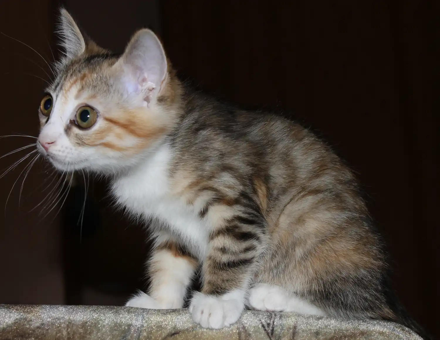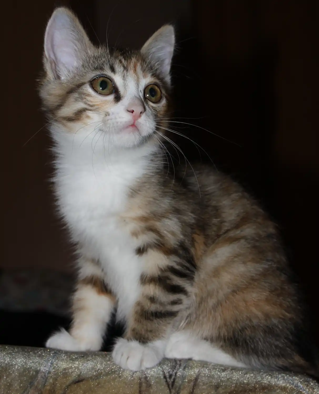Месяц назад я забрала из подъезда двух маленьких грязных очаровательных котят. Помыла, паразитов протравила. Девчонки оказались на удивление спокойными и умненькими, освоили лоток на "отлично". Одна кошечка уже 2 недели благополучно живет в новом доме, а Марусю пришлось оставить еще на некоторое время у себя, чтобы немного подлечить и откормить. Сейчас девочка здорова, ей примерно 2,5-3 месяца (точно сказать не могу). Маруся (так мы назвали котенка) ласковый, спокойный ребенок. В меру игривая, любит побегать за моим котом, вернее за его хвостом. Когда берешь ее на руки - мурлычет и кладет голову мне на плечо. Любит подремать на коленях. Ночью спит спокойно.