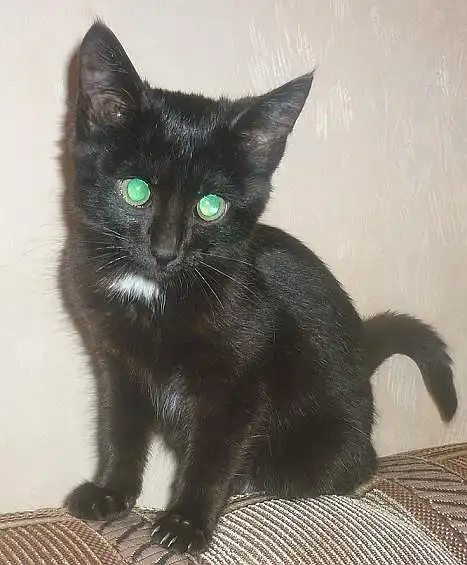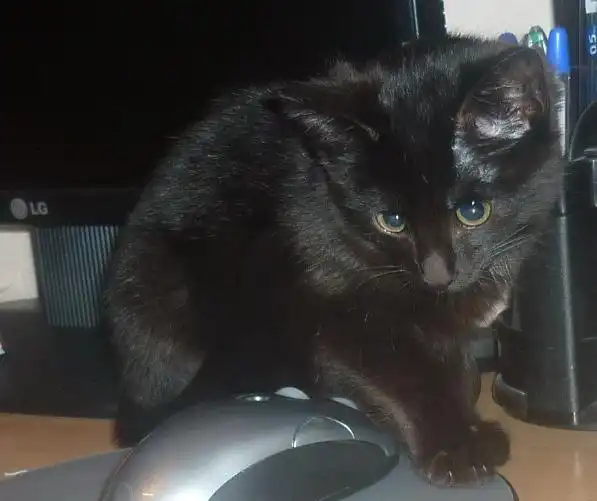 Игривая , очень трогательная и нежная малышка, к сожалению фотографировали "мыльницей", а она не передаёт красоту её зелёных глах и не подетски серьёзного выражения мордочки.
