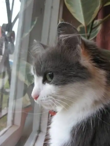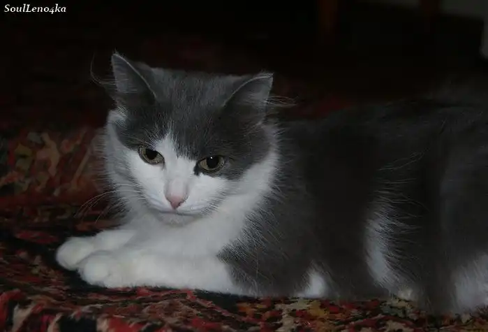 Кошечка стерилизована, туалетом пользуется на 5, имеет очень необычный окрас- дымчатый на белом. Немного пушистая, а на ушках две кудряшки. Потому и получила такое имя. Возраст- 1 год.