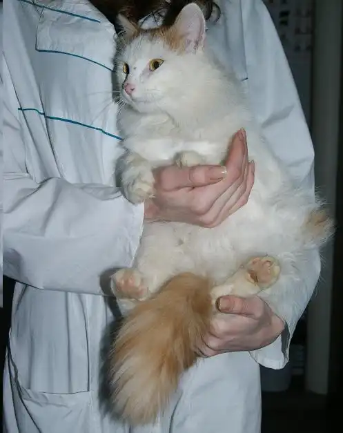 Найден котик пушистый, красивого окраса- белый с рыжими пятнышками и хвостом. Котику 2 года и он уже найден кастрированным. Ищем хозяина и передержку! Ласковый и послушный. Парень сейчас в клинике, но забрать его оттуда некуда.
