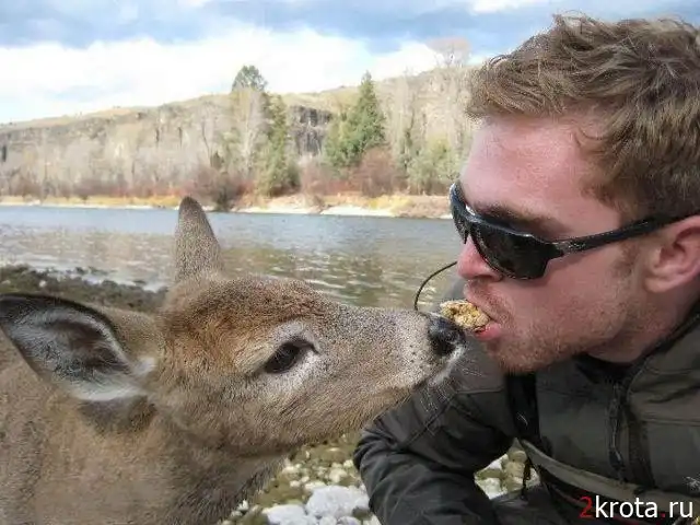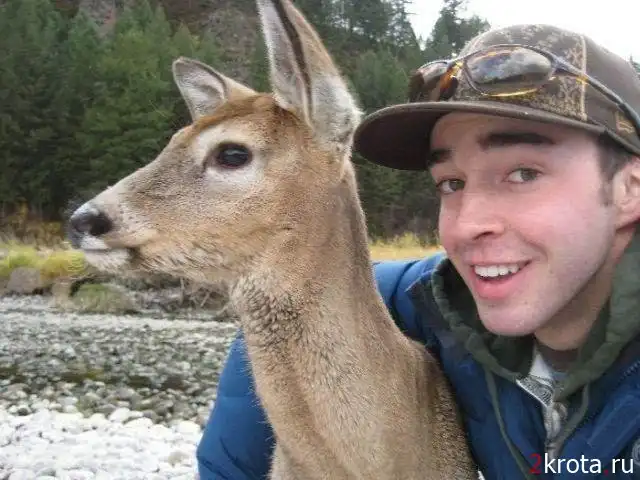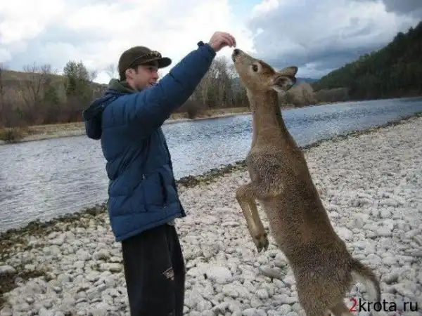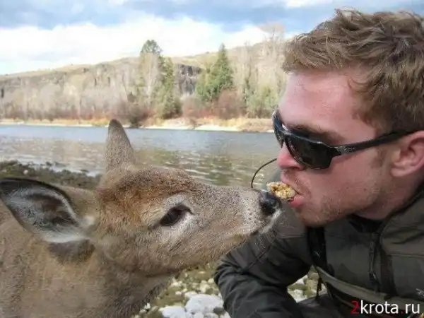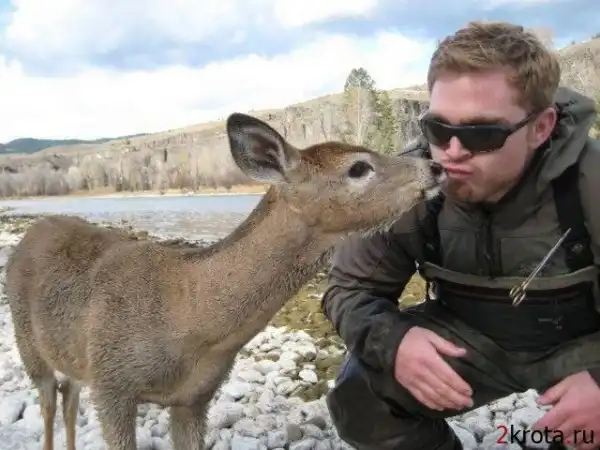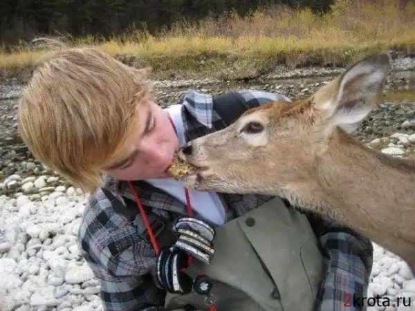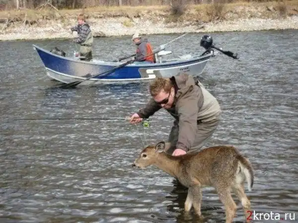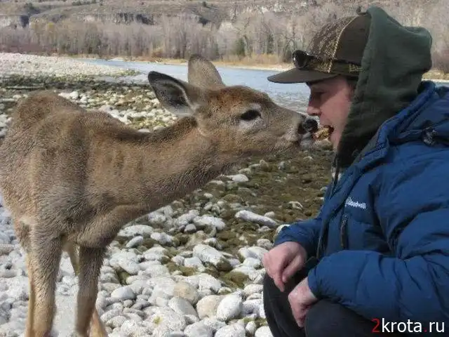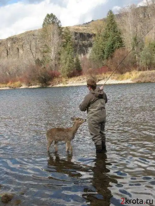 Интересный случай на рыбалке. Из леса вышел олененок, который совершенно не боится людей.