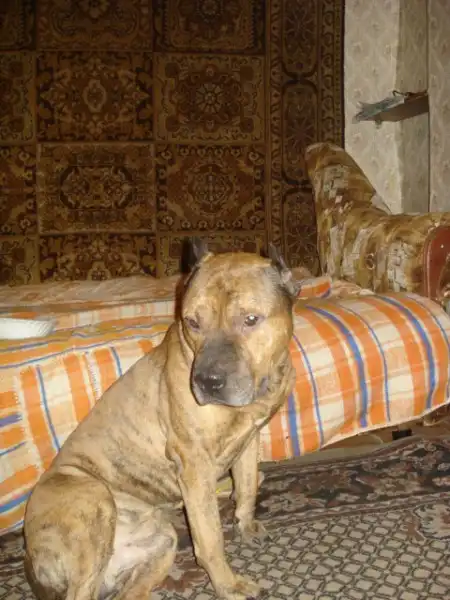 Мальчик, возраст около 6 лет. Очень добрый, спокойный. Гуляет на поводке, приучен к наморднику (хотя и не агрессивен). К незнакомым людям очень дружелюбен. Любит побегать и поиграть. Ест все. Очень умный, знает команды. Причина отдачи: хозяева отдали на передержку на время ремонта и забыли, стал ненужен. Единственное — не любит кошек и больших собак. Хочет быть единственным и неповторимым =) Фома очень сильно ждет хозяина, который его будет любить. На него времени нет, поэтому он почти всегда один, тоскует и нуждается в общении!
