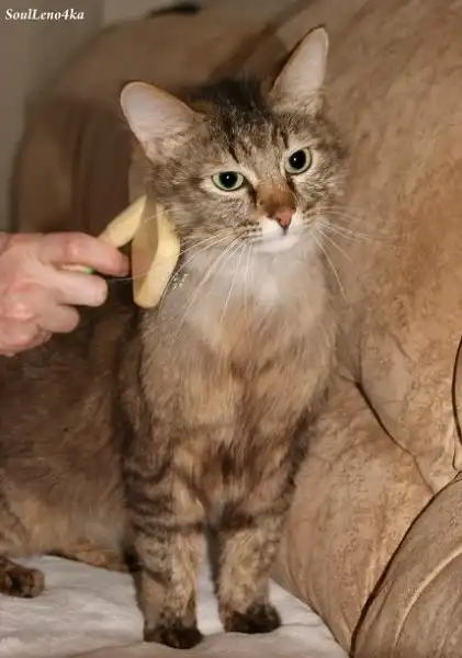 Очень ласковый, крупный (весом более 4 кг) и красивый, с большими изумрудными глазами. В любящих руках распушится! Кастрирован. Правила поведения в квартире - знает. К лотку приучен. Кастрирован. Любит сидеть на ручках, обнимать за шею. Очень спокойный,покладистый. Терпеливо мылся/сушился. Не против,когда его причесывают. Очень добрый.