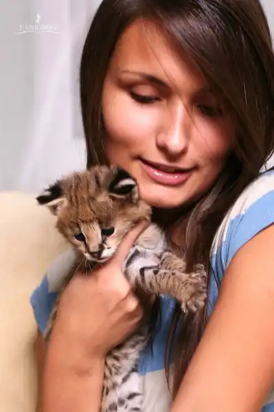 размер средней собаки, домашние Сервалы абсолютно безопасны, в том числе для детей и домашних питомцев.