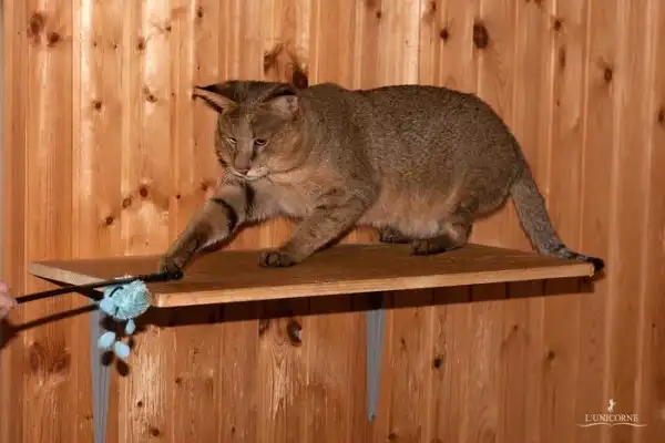 Порода Чаузи F1 получается путем скрещивания дикой африканской кошки Jungle Cat (Felis chaus nilotica) и домашней Абиссинской кошки.