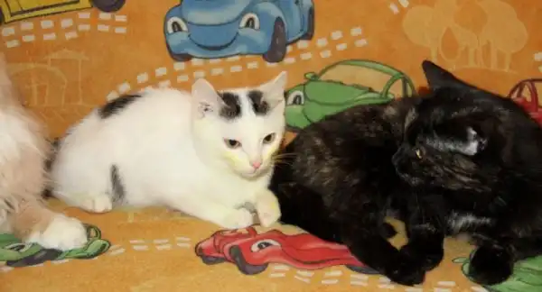 Пуху около 3-месяцев, Йоде исполнилось два. Точной даты рождения мы не знаем, потому что нас выбросили котофермеры…