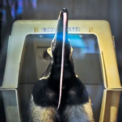 На днях исполнился месяц детенышу гигантского муравьеда, рожденного в зоопарке Сан-Франциско. Это первый за последние 10 лет новорожденный муравьед в этом зоопарке. Фотографу-волонтеру Мэй Вуну (May Woon) удалось сфотографировать уникальные кадры - то, как малыш муравьеда вытягивает свой длинный язык. Полюбуйтесь!