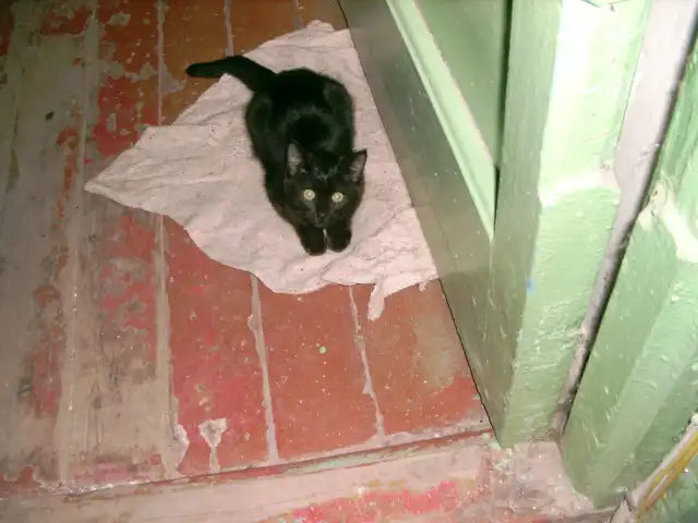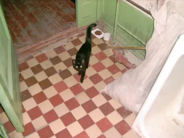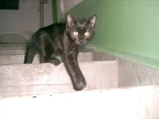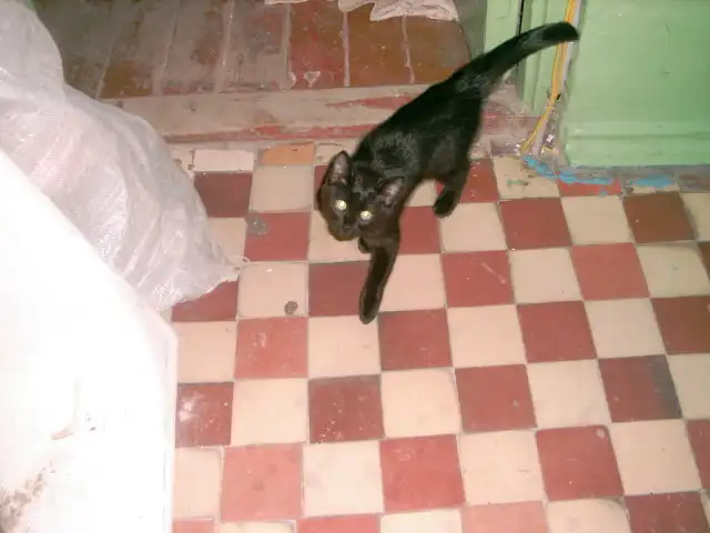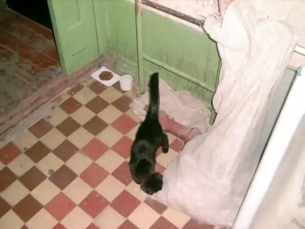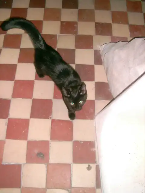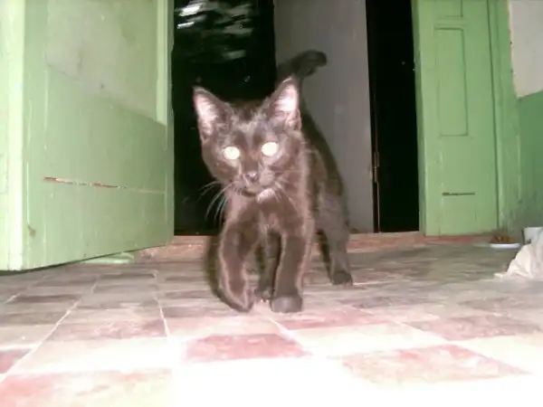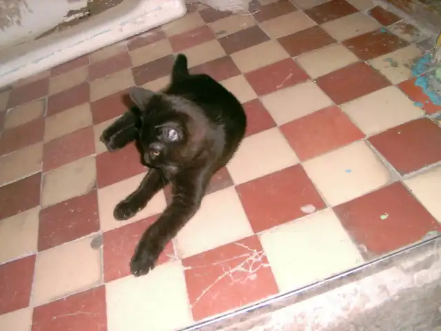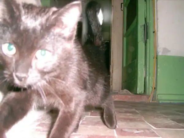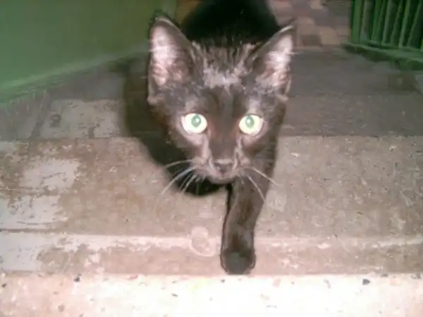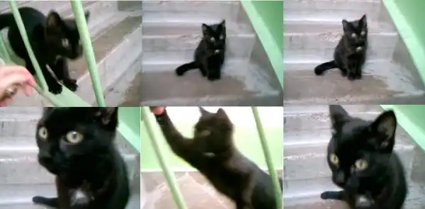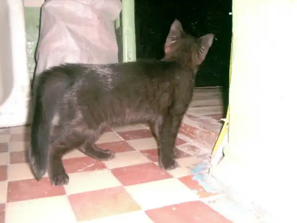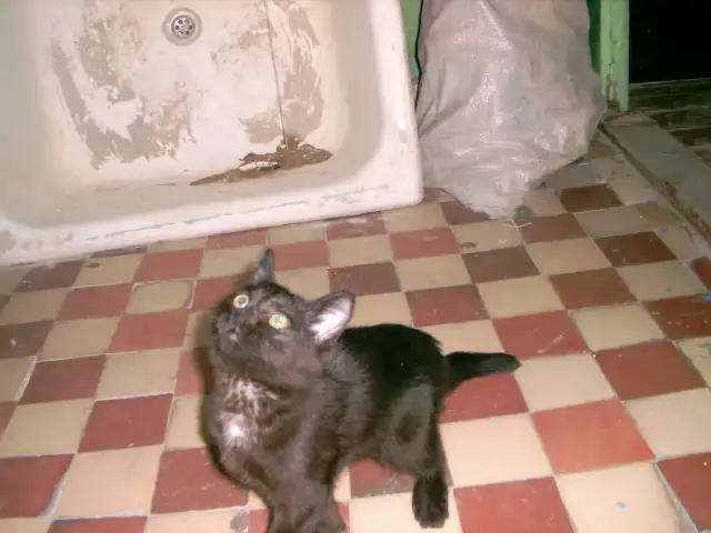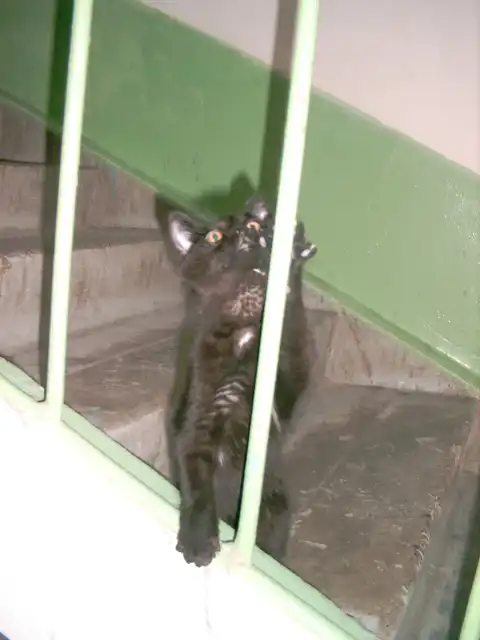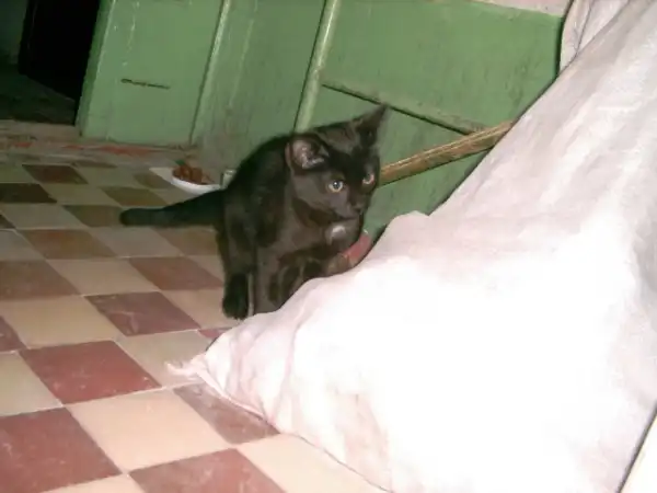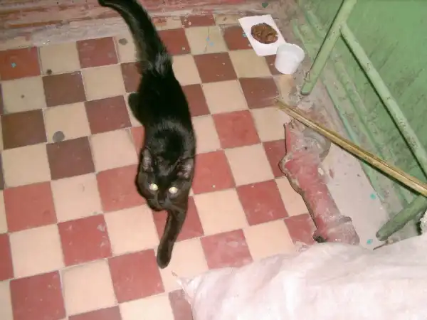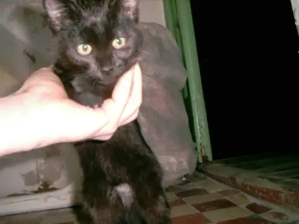 Носится под ногами небоясь ничего и никого. Кидается к людям и мурчит.