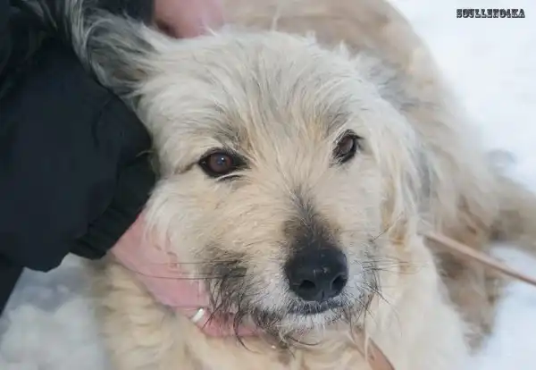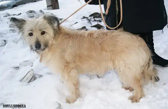 После поисков, удалось, наконец, забрать её на временную передержку. Когда она жила на улице и голодала - неравнодушные люди по-своему поддерживали её. Известно, что этим летом дачники уехали, а Дельку бросили. Как домашняя собака спасалась от морозов - загадка. Возраст - ок. 2-х лет.