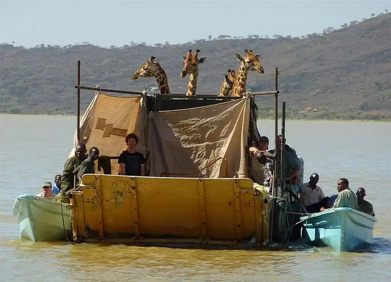 2. 9 февраля, четыре особи жирафа Ротшильда были перевезены по воде на частный остров в водах озера Баринго в Кении.