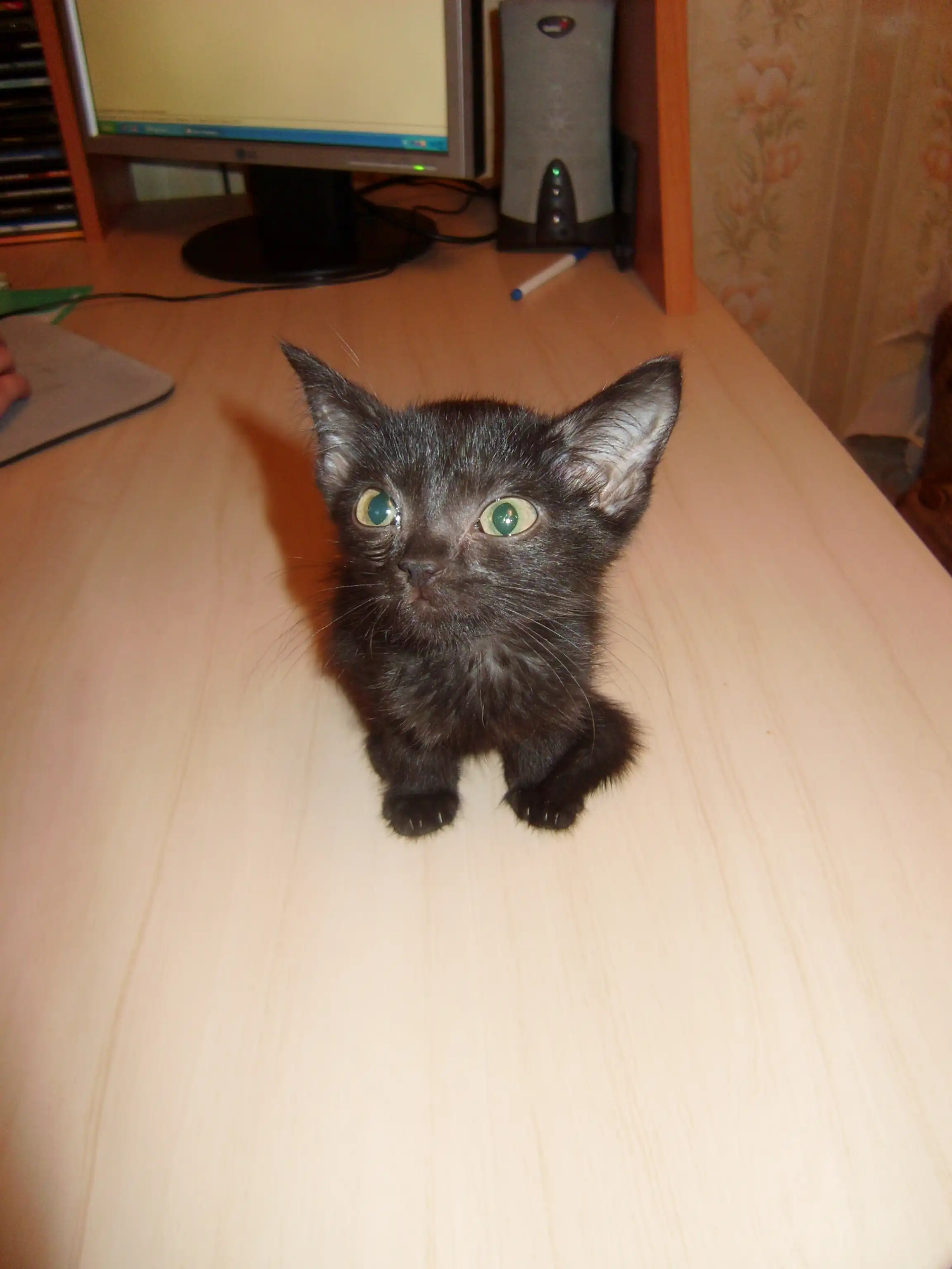 Котенок был найден в подъезде. Маленький, худенький, весь черный(ая) без пятнышек (пол определить не можем). Себе оставить не можем, потому что особняк 15кв.м. и уже есть кошка и собака, они его(её) обижают!
