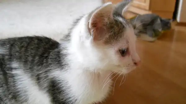 Этот чудесный мальчишка был найден вместе со своей сестрой на Центральном рынке. Был ужасно грязный и голодный, и тихий-тихий такой. Сейчас после всех проведенных профилактических мероприятий (помывка, осмотр ветеринара, травля глистов) это просто маленький конь, который скачет по дому, сметая все на своем пути. Т.е. нормальный, активный ребенок. А потом любит заснуть у тебя на руках, плече, ноге или спине (смотря как сидишь).Ему сейчас около 3,5-4 мес. К лотку приучен. Имеется скидка на кастрацию 50%. Долечиваем конъюнктивит. Звоните вечером 8952-897-0608 Анастасия.