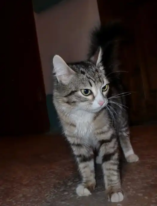 Сегодня в подъезде нашли маленькую, очень ласковую кошечку. Трехцветная, зеленоглазая красавица, ластится к людям, ест все. Звоните 89610966053