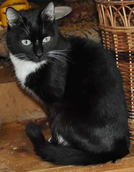 Крупный, стройный, обаятельный, очень ласковый кот Черный Принц хочет обрести дом и своего индивидуального хозяина. Котик черного окраса, в белой манишке и носках, с необыкновенно красивыми бирюзовыми глазами очень редкого оттенка. Он знает, что это такое, быть любимым хозяйским котом. Но хозяин Принца умер, и кот оказался никому больше не нужен. Он немного похудел, сейчас активно поправляется, отличается прекрасным аппетитом, питается готовыми кормами, но может быть переведен и на натуральную пищу. Очень ласковый и благодарный за ласку, но ненавязчивый. Ему приблизительно 1 год. Лоток знает на отлично. Кастрирован.
