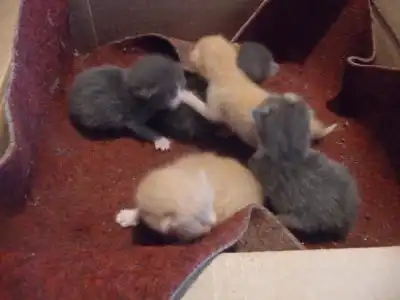 Эти маленькие комочки (две девочки серого окраса и три мальчика рыжего и серого окраса) были жестоко выброшены в коробке на помойку, впрочем, как и их мама. Они очень громко плакали от голода и холода, к счастью мир не без добрых людей. Их забрали домой, накормили из пипетки, так как они совсем еще малыши. Котятам повезло, их маму удалось найти там же, на улице. Хочется им найти настоящих хозяев, которые их не предадут. Котята и их мама будут отдаваться через 2-3 недели. А сейчас семья в полном составе растет, и набирается сил.