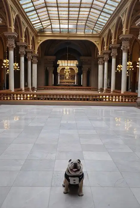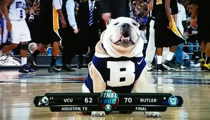 Этот очаровательный английский бульдог по кличке Butler Blue - талисман баскетбольной