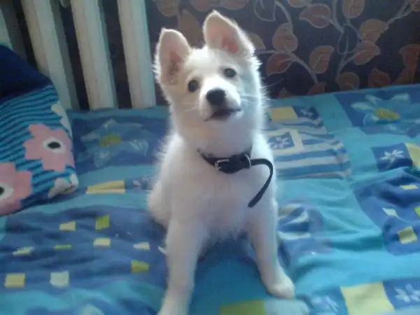 Все тот же белоснежный щенок похожий на лайчонка продолжает искать хозяев.За это время мы подросли, знаем команды сидеть, нельзя, приносим игрушки, и уже ходим в туалет на улицу) - не без ошибок конечно, пока маленькие, но делаем успехи)Сейчас малышу почти три месяца, напоминаю что вырастет небольшим. Очень надеемся что все таки найдется любящий хозяин,потому что кот живущий с нами не принимает и обижает малыша.
