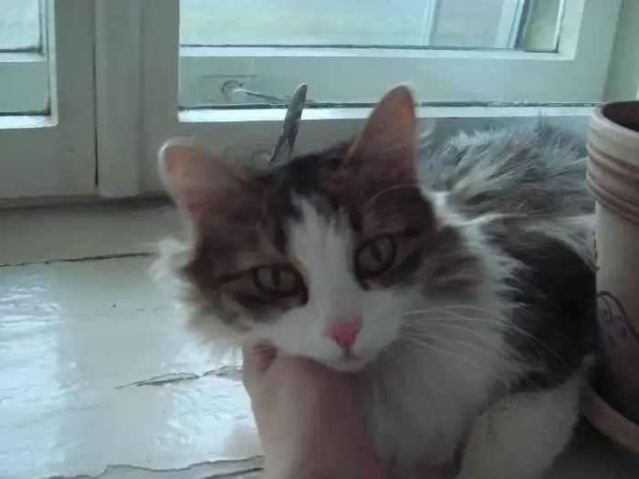 Кошечка Муся, примерно 1 год, очень ласковая, контактная, мурчащая девочка. Стерилизована.
