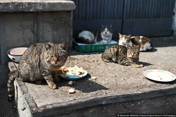 Найти кошачий город просто - он располагается в Севастополе, за центральным музеем флота, почти на пристани, между фуражечной и доком для ремонта кораблей обеспечения.