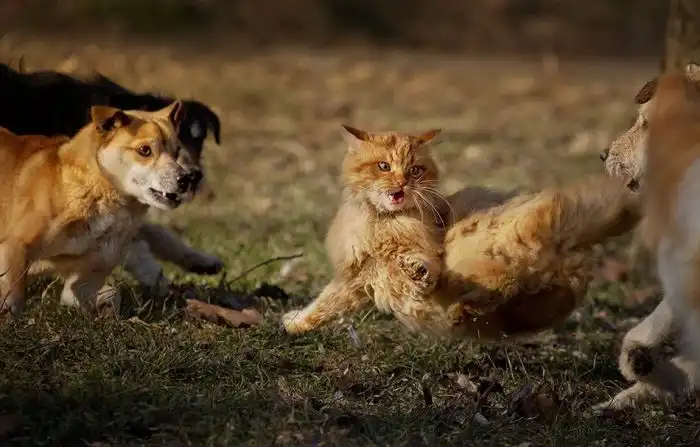 Котяра обвел вокруг лапы трех собак и убежал целым. :)