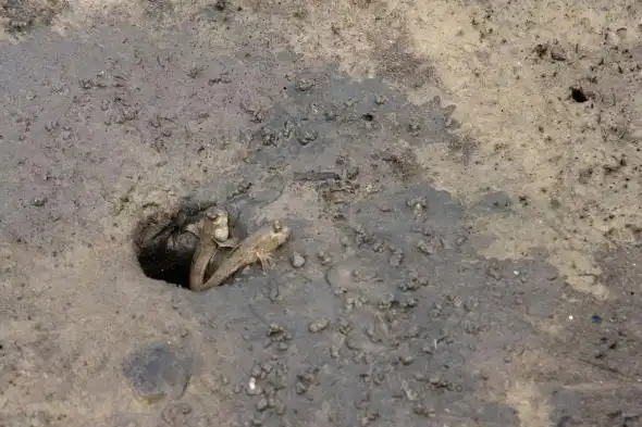 Внешне илистые прыгуны больше похожи на амфибий, чем на рыбу. Да и образ жизни у них отчасти совпадает с земноводными. Длина этой рыбки не превышает 15-20 сантиметров. Все ее тонкое серо-коричневое тело усеяно различными темными пятнами и серебристыми блестками. Непропорционально большую голову украшают выпуклые на макушке глаза и огромный рот. Передние плавники больше похожи на лапки, при помощи которых она выбирается из воды на сушу.