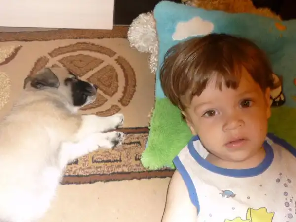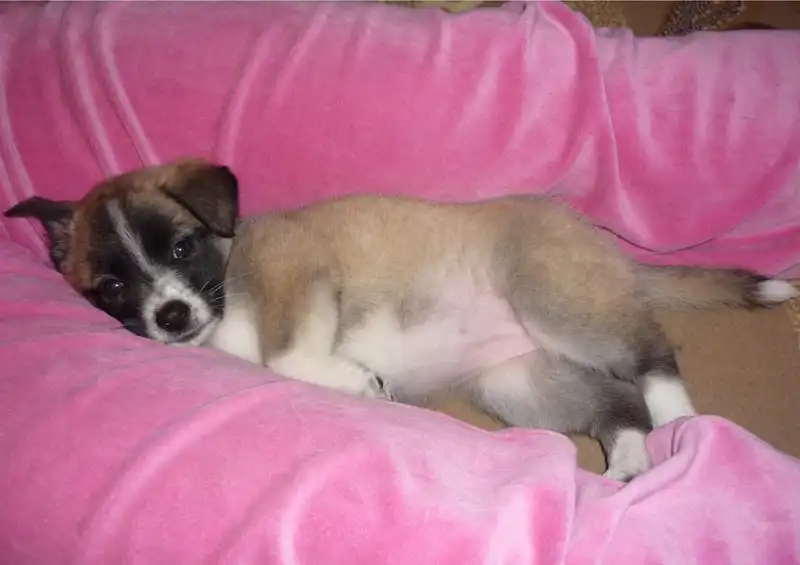 щенок.Сказали,мол,увидели на улице,погладили,вот и привязался..