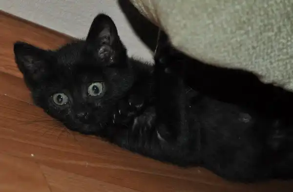 Котята абсолютно чёрные, без единого пятнышка, это котик и кошечка. Малыши очень активные, игривые, несмотря на свой юный возраст ходят в лоточек с наполнителем, кушают проф корм, но от хороших натур продуктов также не откажутся:)