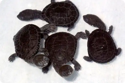 Когда тринадцать маленьких черепашек вырастут, их диаметр достигнет примерно 25 сантиметров, а пока он не превышает размеры обычной монеты.