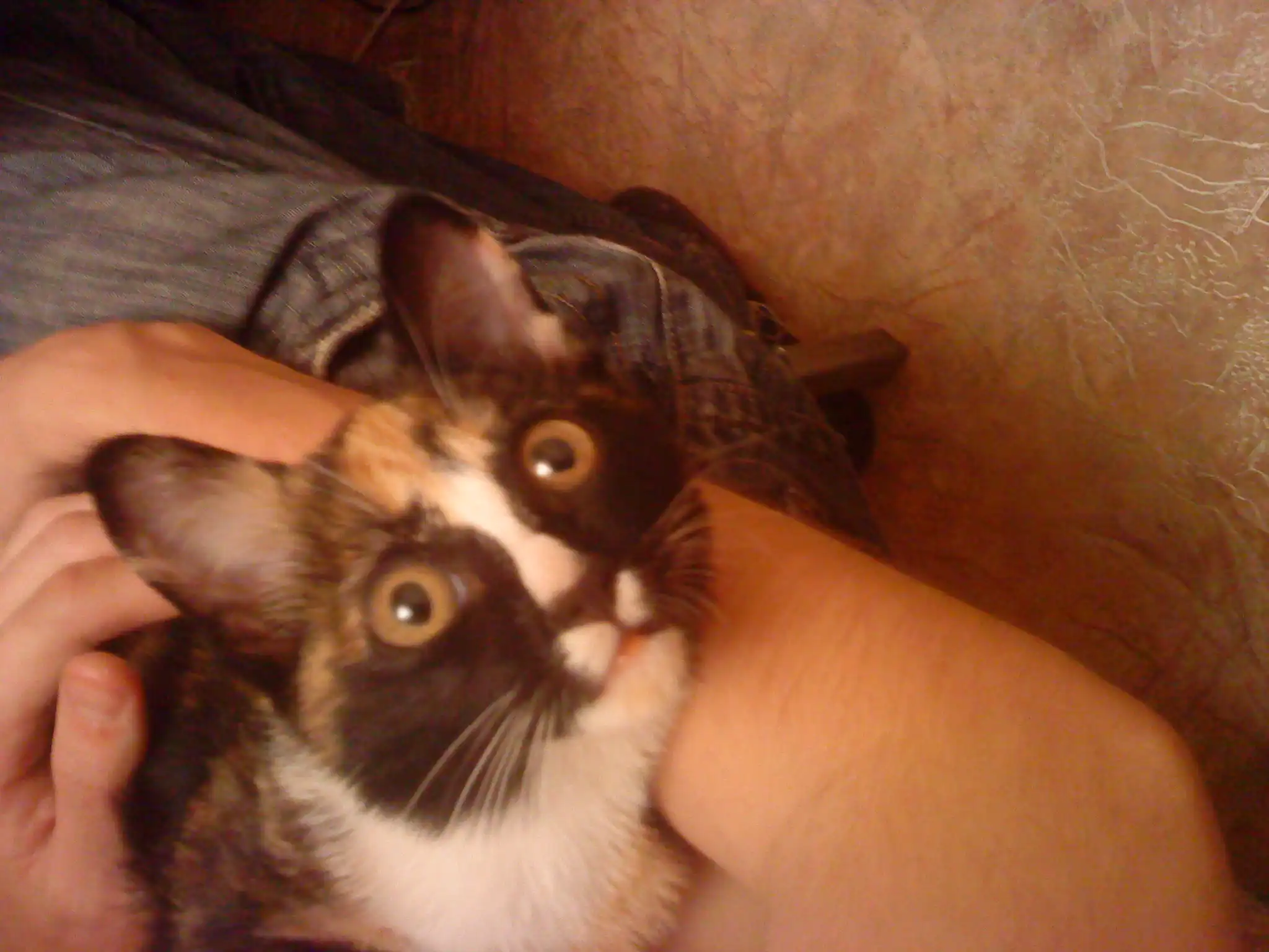 Красивая и ласковая кошечка на вид 4-5 месяцев. К лотку приучена, в еде не привередлива. Всю ночь спит рядом и по утрам не будит. Очень умная, хорошо понимает слово "брысь". Любит сидеть на коленях и смотреть в монитор. Мурчит по любому поводу=)