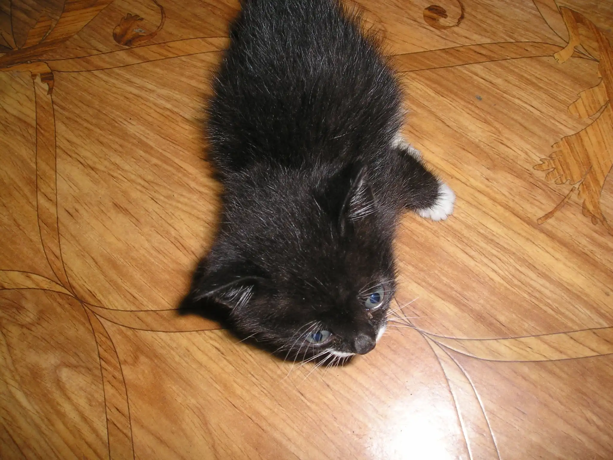 3)тоже весь черный, пузо лапки мордочка и носик белые