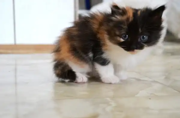 Четыре девченки - две черепахового окраса и две белые, как мама.