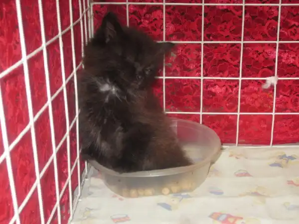 Очень красивая, пушистая котеночка хочет найти дом. Цвет шерстки очень необычный, шоколадный. Кисуня, несмотря на очень юный возраст (примерно 1 мес.) очень адекватна, хорошо кушает корм для котят, пользуется лотком. Забрала ее на остановке, где очень пьяный товариш таскал ее в пакете и пытался пристроить прохожим.