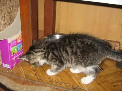 Сегодня пошла до магазина услышала крик котёнка, на зов кис кис котёнок прибежал сразу с криками.В магазине спросила она сказали котёнок сидит уже третьи сутки в этом лесочке кричит,пришлось взять т.к не смогла его оставить там . Котёнок игривый ,здоровенький,ласковый,с ней разговариваешь она отвечает как будто что то рассказать хочет .Возраст примерно 1,5 месяца, милая девочка,бойкая в обиду себя не даёт,к другим кошкам равнодушна ,есть блошки но это мы исправим,ушки чистенькие.