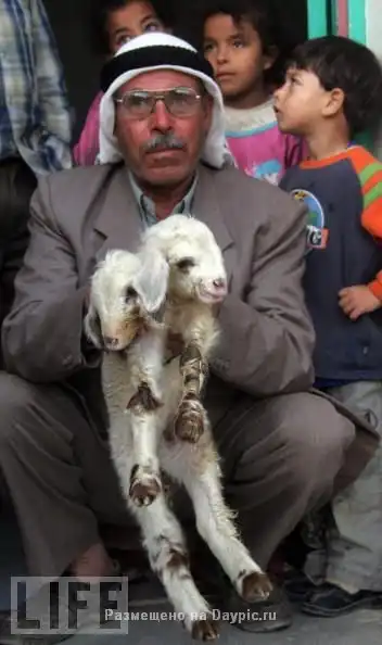 Фермер с двухголовой овцой в Хевроне на Западном берегу реки Иордан, 2008 год.