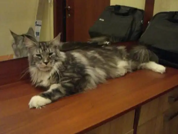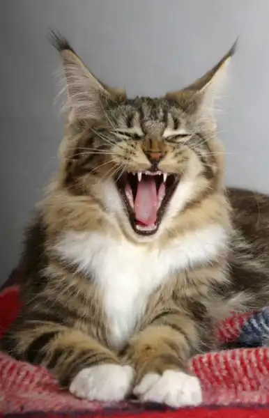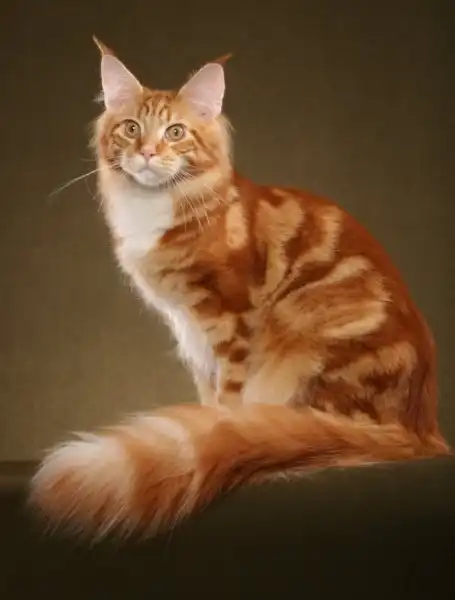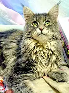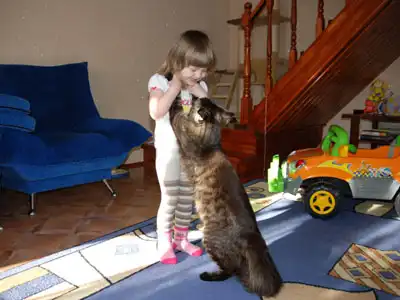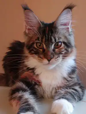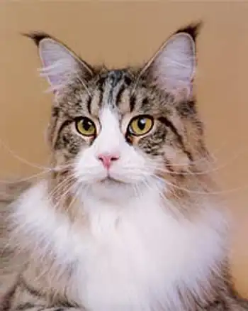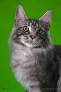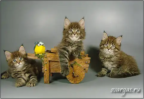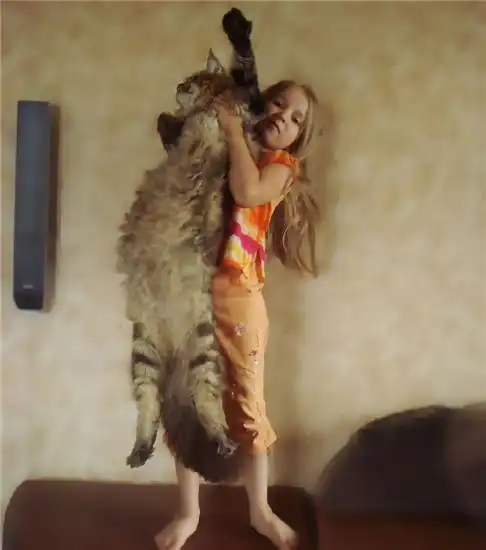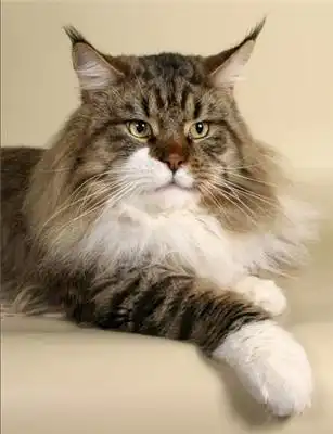 Достоинства: Самая крупная порода среди домашних кошек (отдельные особи достигают 14 килограммов в весе), отличающаяся дружелюбным, миролюбивым и покладистым характером.