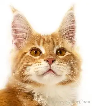 Уши: Очень большие, широкие в основании, остро заканчивающиеся, поставлены высоко, почти вертикально. Расстояние между ушами не более ширины одного уха. Щёточки выступают за край ушей, кисточки на ушах делают мейн-кунов похожими на рысь.