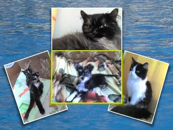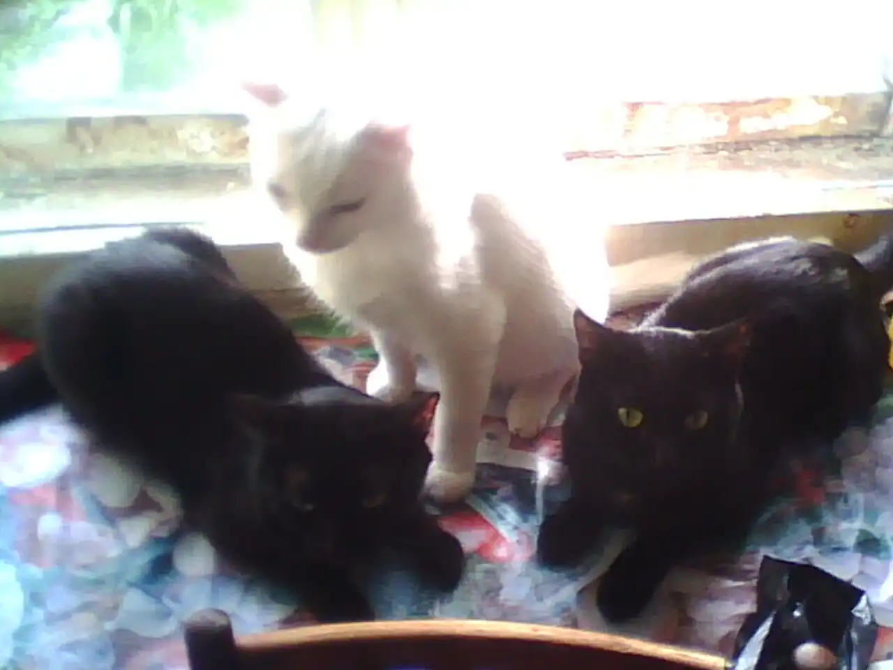 приветствую! вот фотографии домашних животных)) белый котик-Васька,2 черных котика Мартин и Александр(они не братья), а также сом Пират,и собака Блэк)))