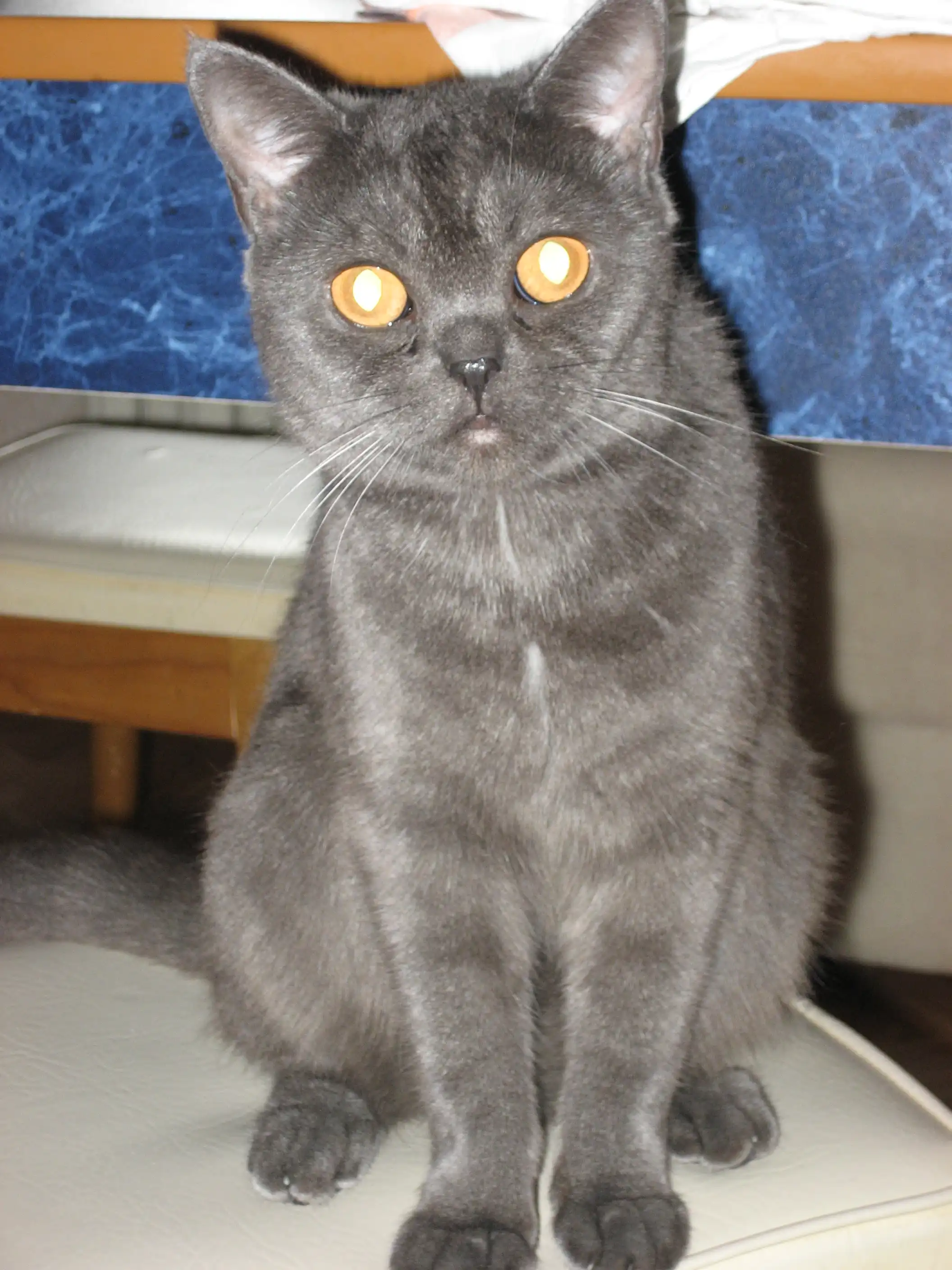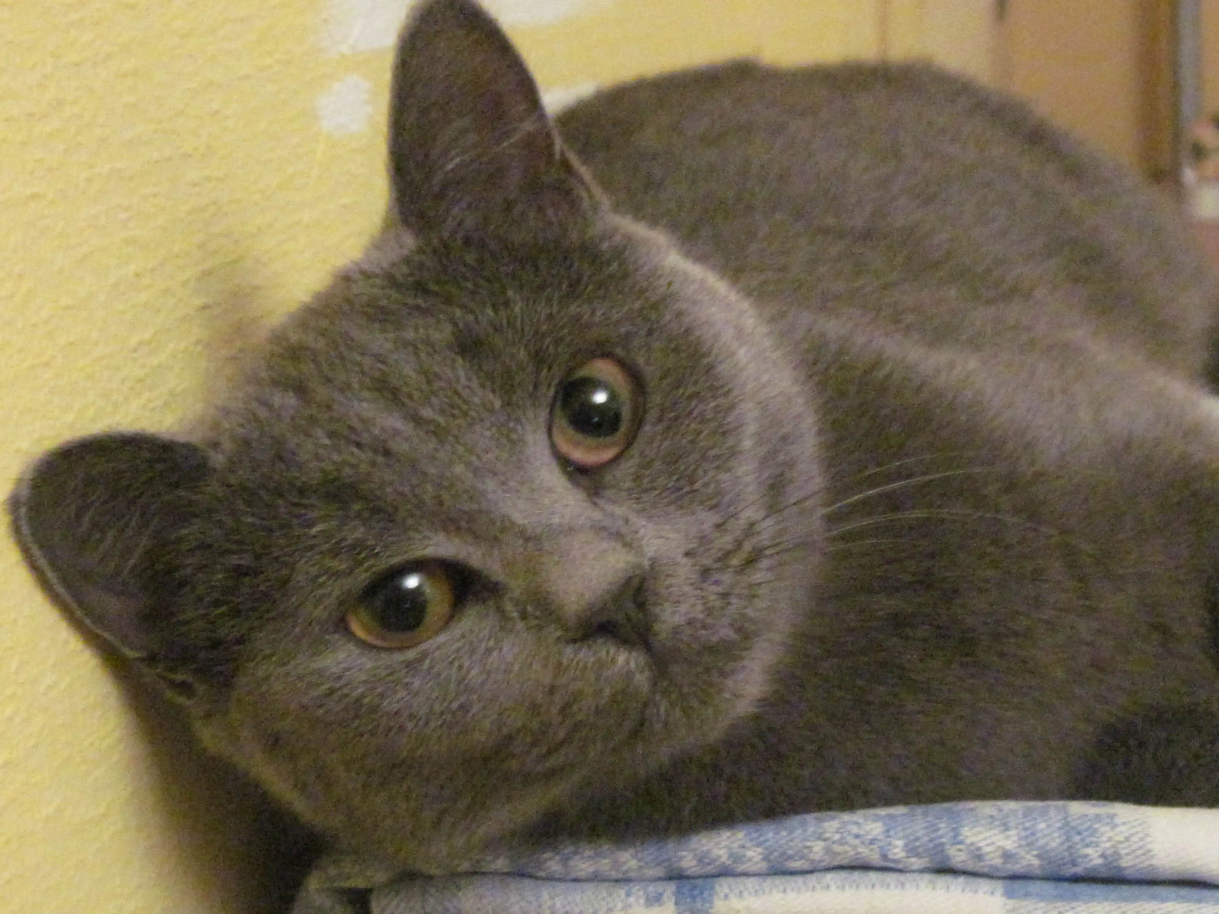 Кошака зовут Алиса, уже 14 лет живет у нас. Полнопрывный челен семьи smile Первые пять лет была фиолетовая. потом стала дымчатая, жалко фотки не сохранились.