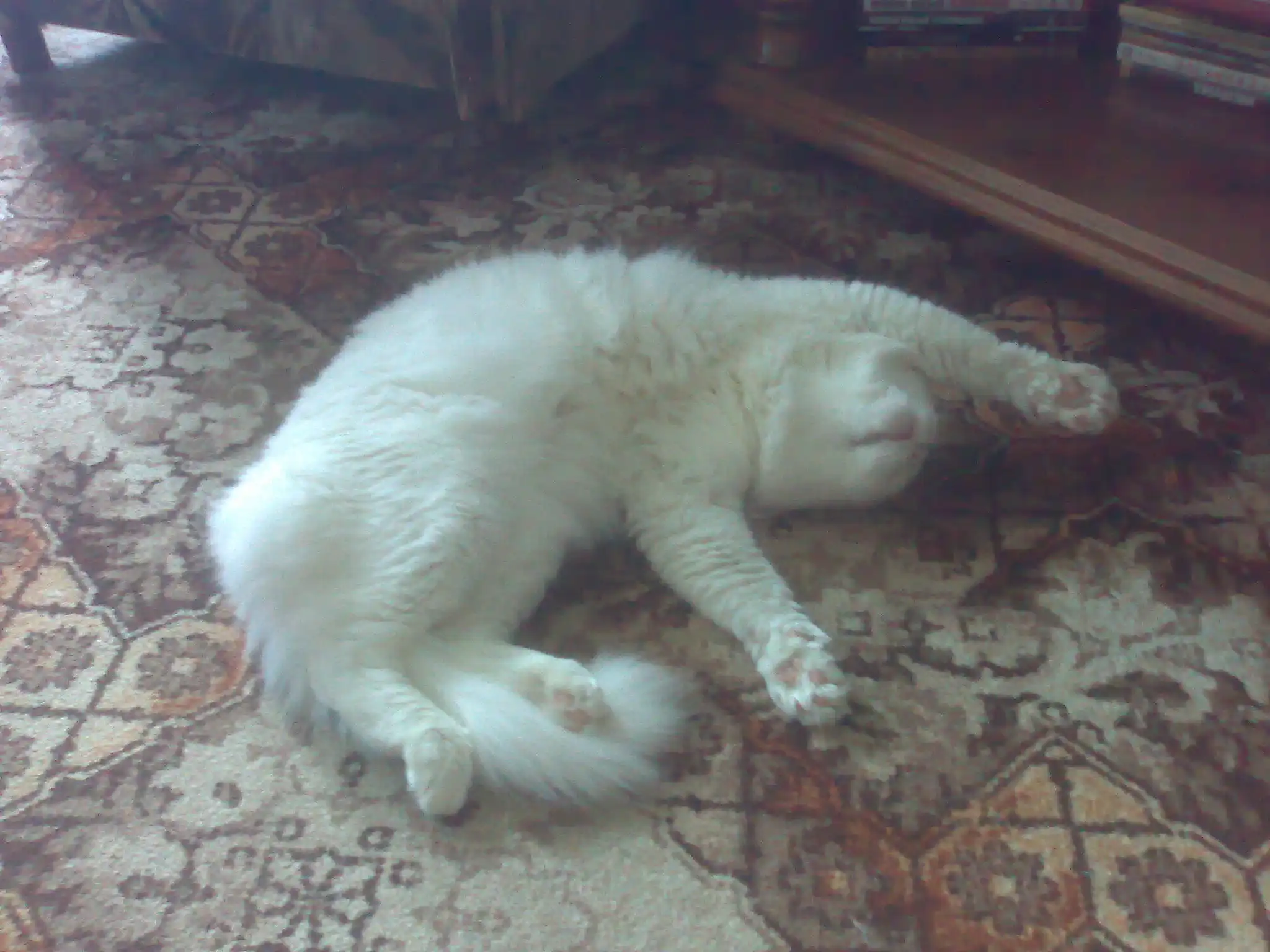 вот мой котяра, заснял когда он тянул РОТ, я его зову Дуг, а полное имя Дуглас, он очень любит жрать салями вот и всё ^^