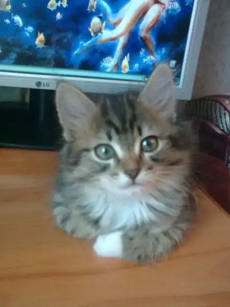 Кошку зовут Бусинка. Здесь ей 2 месяца