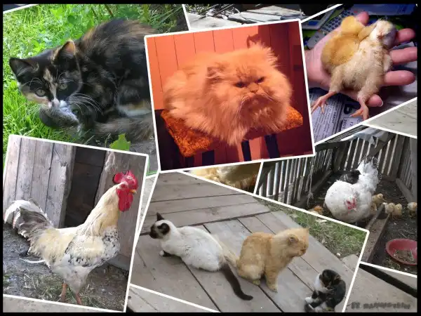 А это весь мой зверинец) Рыжий кот Семён_ака_Сема - очень своенравный и важный, к себе почти не подпускает, не очень то любит, чтобы его гладили, предпочитает сам приходить ласкаться на пару минут;) Сиамская кошка Люська и трехцветный котенок девочка Лиза( уже неплоха ловит мышей ); в стайке живет петух Петя с курами ;) Ну и молодая мамаша "кут кудаааак кут кудааак" с цыплятами)
