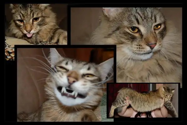 у него проблемы с ходьбой ходит шатаясь но его это не как не тревожит Зовут Ботя) Позитивный умный Первый кот, которого любит вся семья)