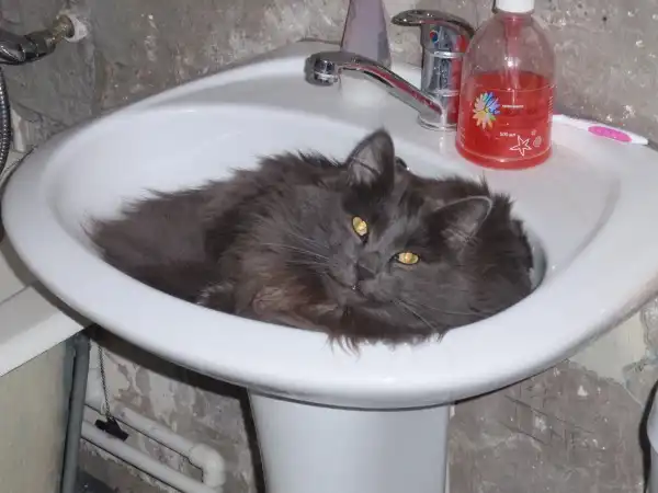 вот мой кот, зовут Басик. активный, жизнерадостный, любит лазить на шкафы, пьет воду из аквариума (при этом не ест рыбок), ужасно боится швабры, не любит молоко и сметану.