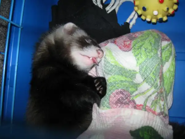 Это мой хорёк зовут Шкипер! он так всегда спит с языком на бок. : )