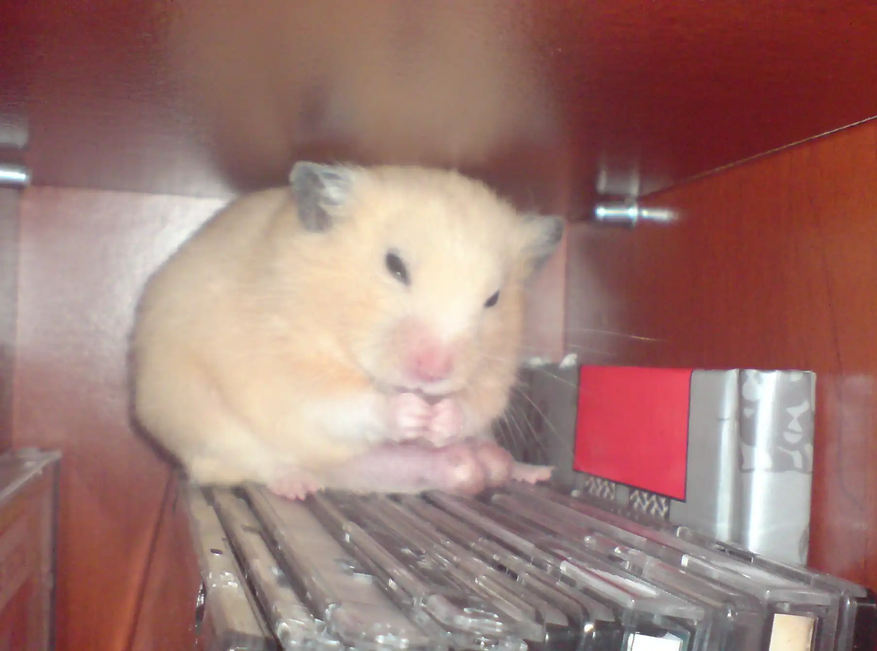 Его зовут Яшка, живет у меня не так давно, но за это время очень полюбил фотографироваться и кушать фрукты:))) Порода моего хомяка - мальчика - "Сирийский хомяк", днем он спит, а ближе к вечеру начинает активно крутить колесо.