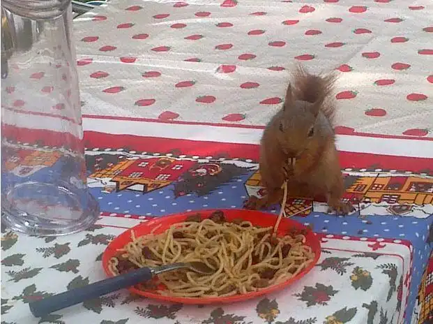 Стефании Кавиччиоли сфотографировала эту очаровательную белочку, решившую подкрепиться спагетти в детском летнем лагере в Стамбуле, где отдыхали сыновья фотографа восьмилетний Джорджио и семилетний Роберто.
