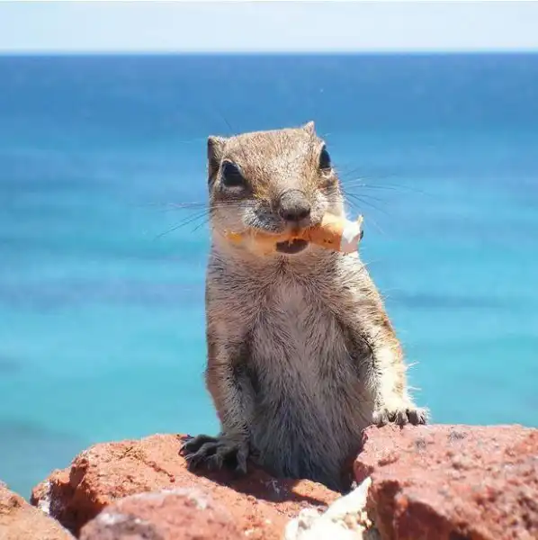 А вот и бурундук, который, кажется, решил выкурить сигарету. Фотография была сделана Джоанной Эванс из Манчестера на одном из Канарских островов под названием Фуэртевентура. Джоанна, отправившаяся туда, чтобы провести отпуск с бой-френдом, рассказывает «Мы уже уходили с пляжа, когда увидели этого красавца. Зрелище было такое необычное, что я принялась поспешно его фотографировать. И даже успела сделать несколько снимков, пока он не удрал куда-то в кусты».