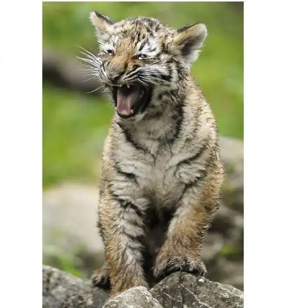 Детеныш амурского тигра в зоопарке Цюриха, Швейцария.