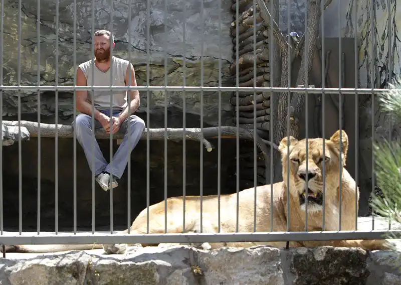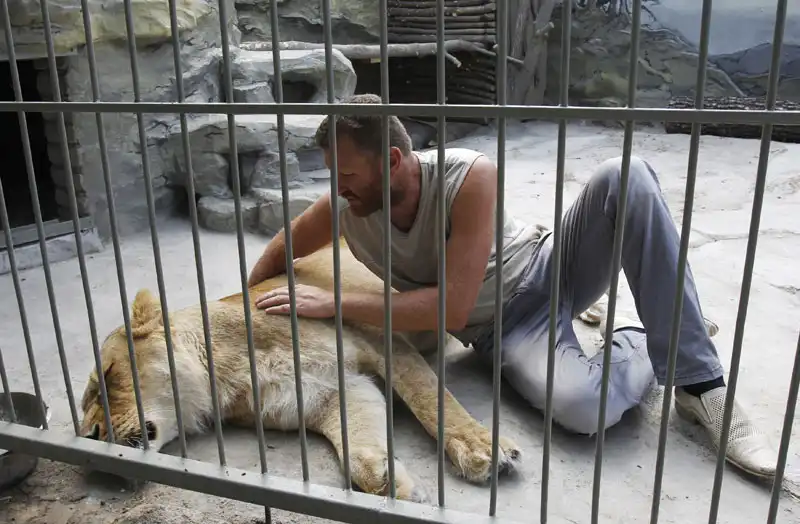 Мало того, что владелец украинского мини-зоопарка хочет переехать в клетку со львицей, так он еще и планирует остаться с ней надолго. Александр Пылышенко, которому 40 лет, хочет попасть в Книгу рекордов Гиннесса, проведя пять недель бок о бок с животным. Все осложняется тем, что львица беременна.