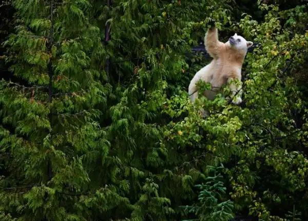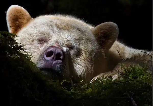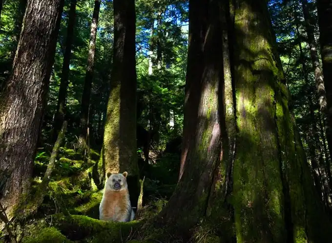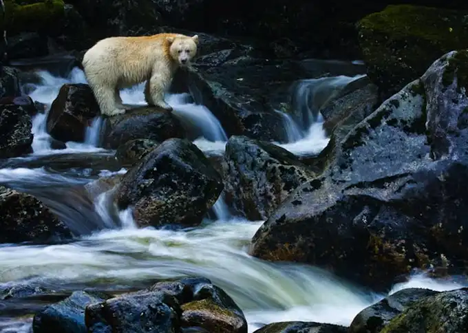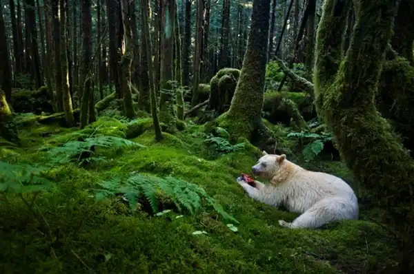 Вы когда-либо видели бурого медведя, который был бы почти полностью белым? Это уважаемое и редкое существо найдено в устланом мхом тропическом лесу в Британской Колумбии в Канаде.